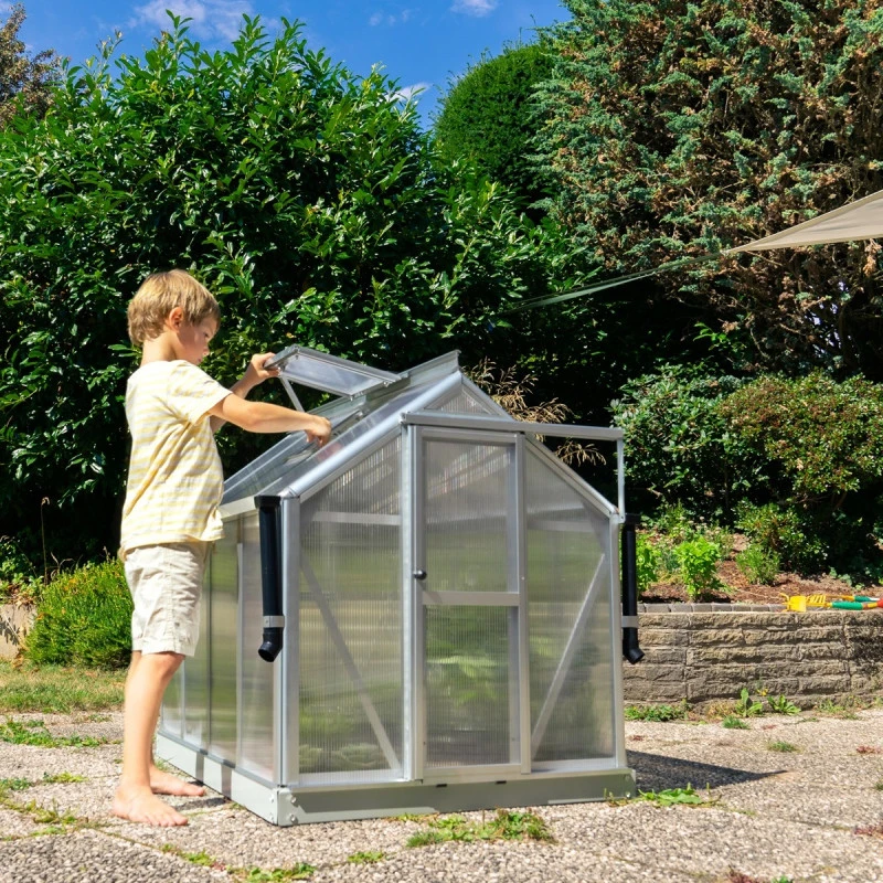 Outre le design de qualité, la mini-serre de jardin Merlin bénéficie d’un équipement complet tout comme celui des grandes serres. Elle est livrée avec 2 portes – 1 battante et 1 coulissante, 1 fenêtre de toit et des gouttières. Cultivez vos herbes aromatiques ou utilisez la serre Merlin comme un châssis froid, le choix est à vous !