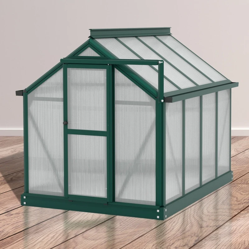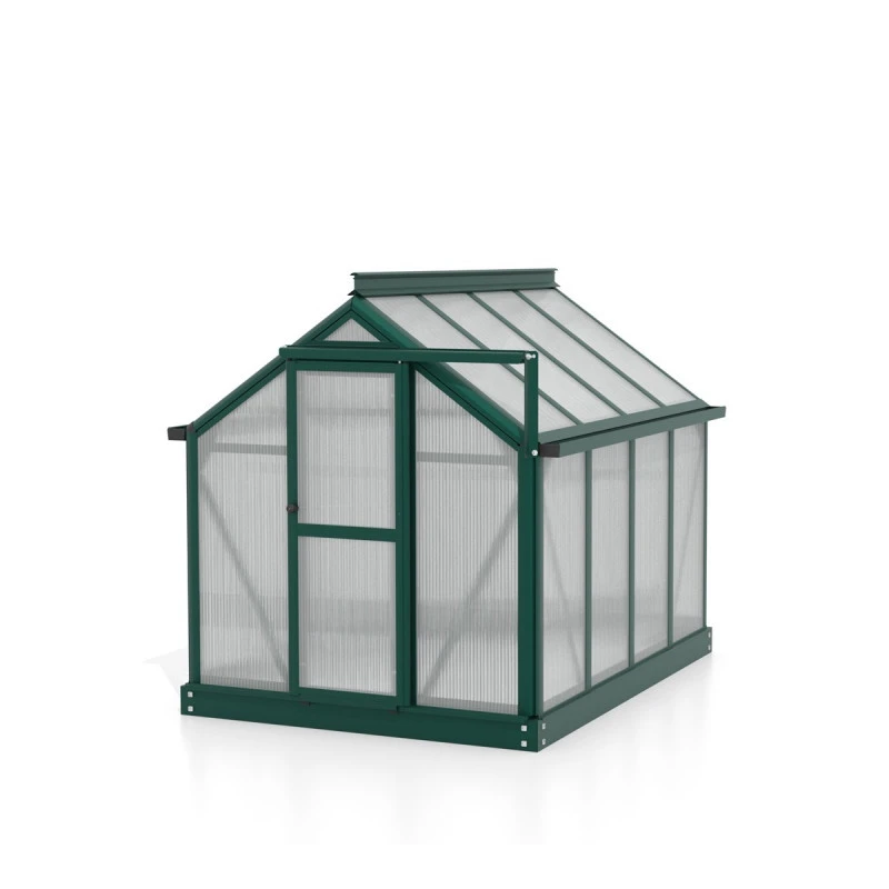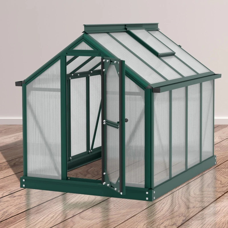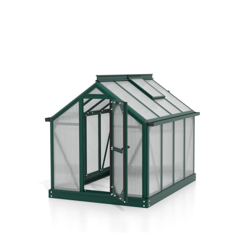 Superbe avec sa petite taille, la serre de jardin Merlin possède tous les atouts d’une grande serre. Les profilés aplatis sont conçus en aluminium anodisé ou peint par poudrage en émeraude ou noir pour une excellente résistance aux intempéries et à la corrosion. Le vitrage est en polycarbonate de 4mm, traité anti-UV, isolant et pratiquement incassable. L’embase en acier d’une hauteur de 6,3cm est également incluse afin de stabiliser la serre Merlin au sol. Une vraie petite merveille !