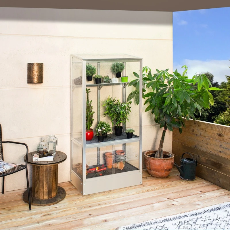 Conçue pour les balcons, la serre de jardin Polis 350 du fabricant Vitavia séduit par son design compact mais très fonctionnel. Sur une surface au sol de 43x81cm, vous aurez la possibilité de cultiver vos herbes aromatiques ou vos légumes préférés !