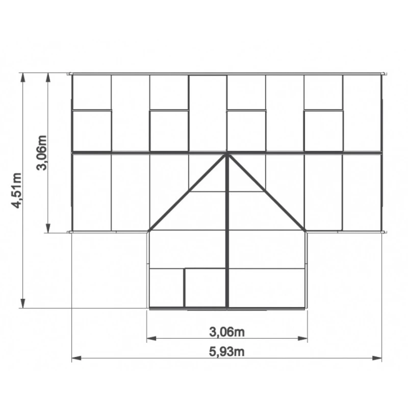 La serre de Sophie est une serre de vie exceptionnelle, d’une surface de 22,59m² et consistant en un assemblage en forme de T de 3 modules, d’une largeur de 3,06m chacun. Le module principal développe ainsi une profondeur de 4,51m pour une largeur totale de 5,93m. Avec des parois de 179cm et une hauteur faîtière de 259cm, vous disposez d’un beau volume dont chaque annexe peut être affectée à différentes fonctions.