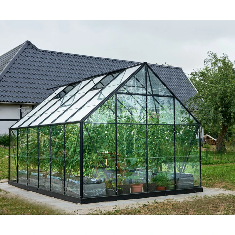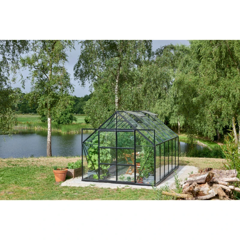L’avis du spécialiste sur le pack serre 9,9m² noire en verre trempé Double Porte + embase noire Universal Halls