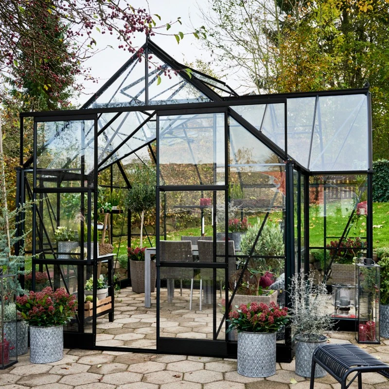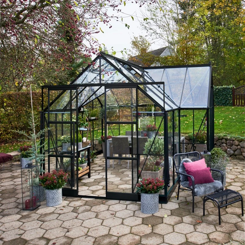L’avis du spécialiste pour serre de jardin 12,9m² noire en verre trempé Garden Room avec embase incluse – Halls