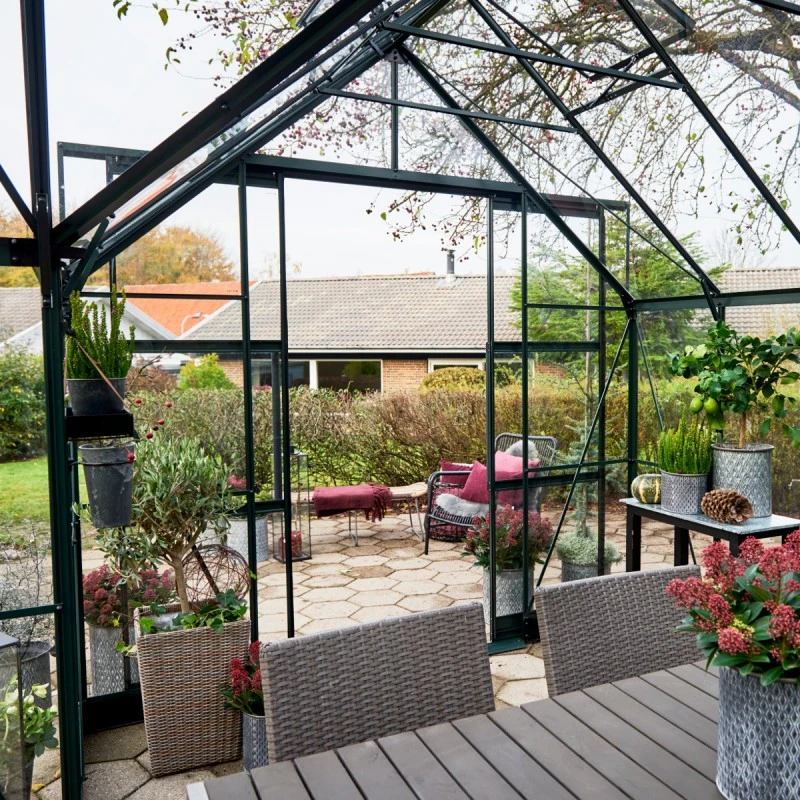 Cette serre exclusive fait partie de la gamme Garden Room, pour laquelle le fabricant Halls a repris toutes les caractéristiques de leur modèle historique, en y apportant des améliorations rendues possibles par des matériaux modernes et les dernières avancées technologiques. C’est une serre haut de gamme, à un prix abordable, qui peut être utilisée également comme jardin d’hiver.