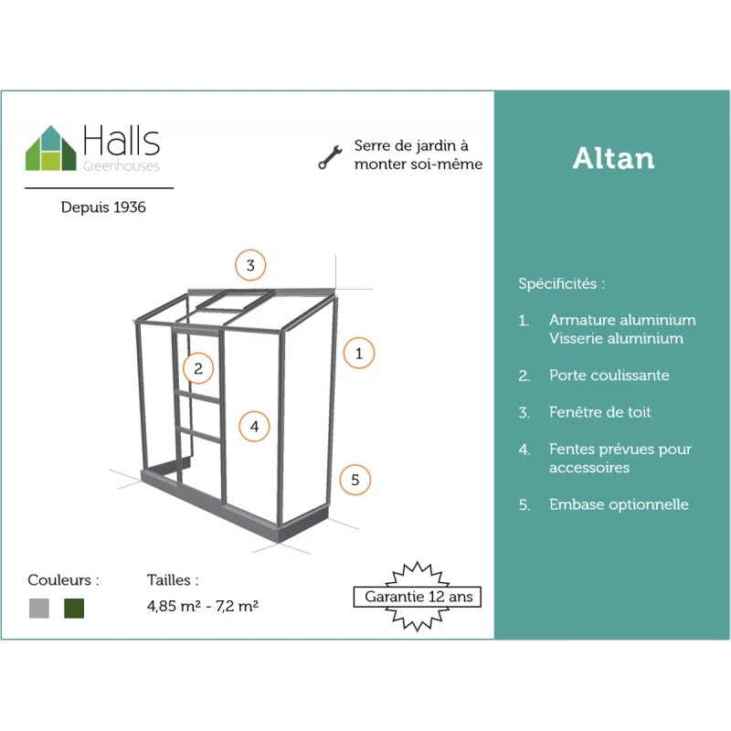 L’avis du spécialiste sur la serre adossée 1,33m² Altan 3 en aluminium et et polycarbonate 4mm Halls