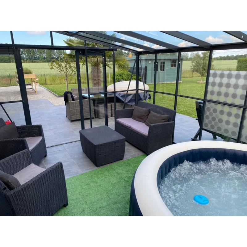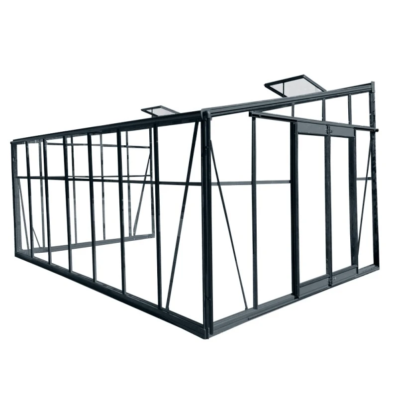 L’avis du spécialiste pour serre adossée 13,71m² LUXE en aluminium anthracite et verre trempé 4mm – Green Protect