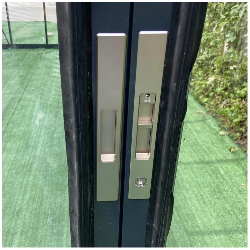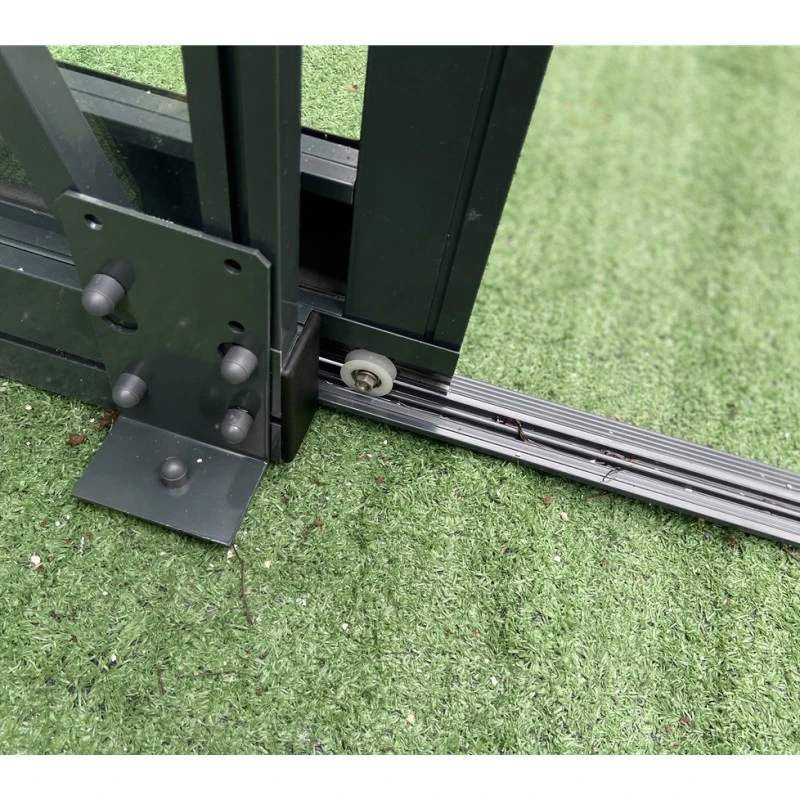 L’accès à l’intérieur de la serre Luxe se fait par un des pignons, via la double porte coulissante. Au moment du montage, vous pourrez décider de placer la porte sur le côté droit ou sur le côté gauche. Vous aurez même la possibilité de monter une double porte à chaque extrémité en choisissant la porte supplémentaire en option. Très bien conçue, le passage de porte est bas, ce qui rend les déplacements aisés, seul ou avec sa brouette…