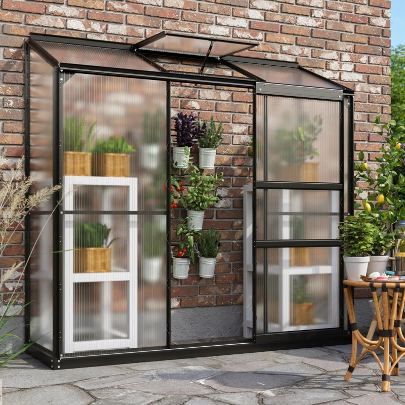 Compacte avec son design en appentis, la serre de jardin en alu Ida existe en 6 tailles, 3 couleurs, 2 ou 3 types de vitrage selon la taille. Il suffit de choisir celle qui vous convient le mieux et de cultiver vos herbes aromatiques et vos plantes préférées tout près de la maison !