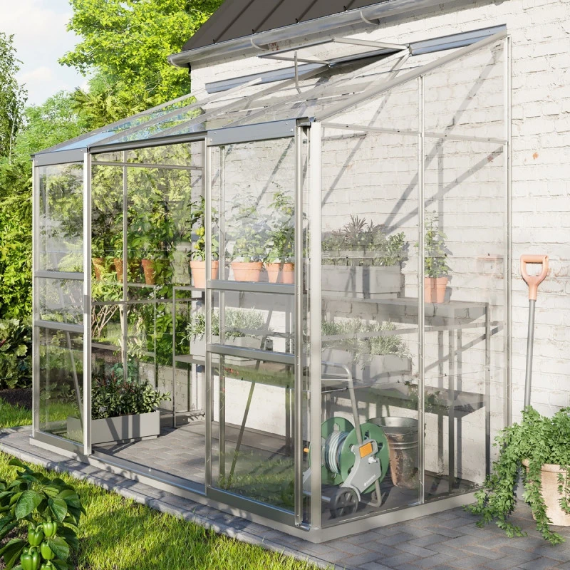 Installée contre un mur de votre habitation, la serre de jardin Ida 3300 du fabricant Vitavia est une solution pratique pour créer un petit potager ou cultiver vos plantes préférées. Son design en appentis est complété d’une double porte coulissante pour gagner de la place. Cependant le faîtage élevé de 222cm permet de vous tenir debout et de soigner votre verdure en tout confort.