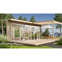 Disponible en 6 tailles, 3 couleurs, 2 ou 3 types de vitrage selon la taille, la serre adossée Ida du fabricant Vitavia est un modèle qui convient autant aux petits qu’aux grands espaces.