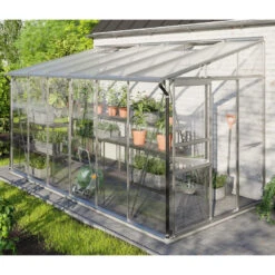 La serre de jardin Ida 5200 du fabricant Vitavia s’installe parfaitement contre un mur de votre habitation avec son design en appentis. D’une surface au sol de 262x201cm, elle bénéficie d’un faîtage élevé de 221cm qui vous permet de travailler à l’intérieur sans vous courber. La double porte coulissante facilite l’accès et vous pouvez créer et soigner votre paradis vert en toute tranquillité !