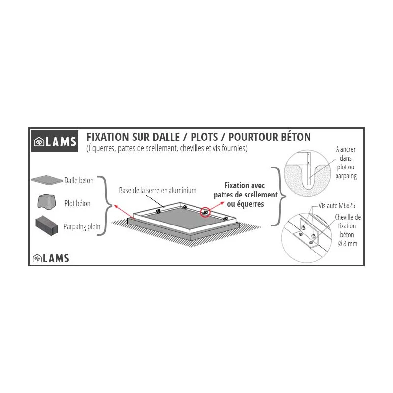 Cette serre est à adosser à une paroi existante. Elle est composée d’une structure en profils d’aluminium montée sur une base également en aluminium, pour une stabilité structurelle impeccable, un montage simplifié et une protection optimale des parois en cas de chocs. La base peut être fixée directement sur dalle de béton au moyen des chevilles fournies, pour une utilisation comme jardin d’hiver ou pour la culture de plantes en pots.