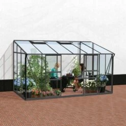 Serre Melissa Ida 7,2m² En Aluminium Laqué Gris Et Verre Trempé 3mm + Embase Incluse – Natura Lams
