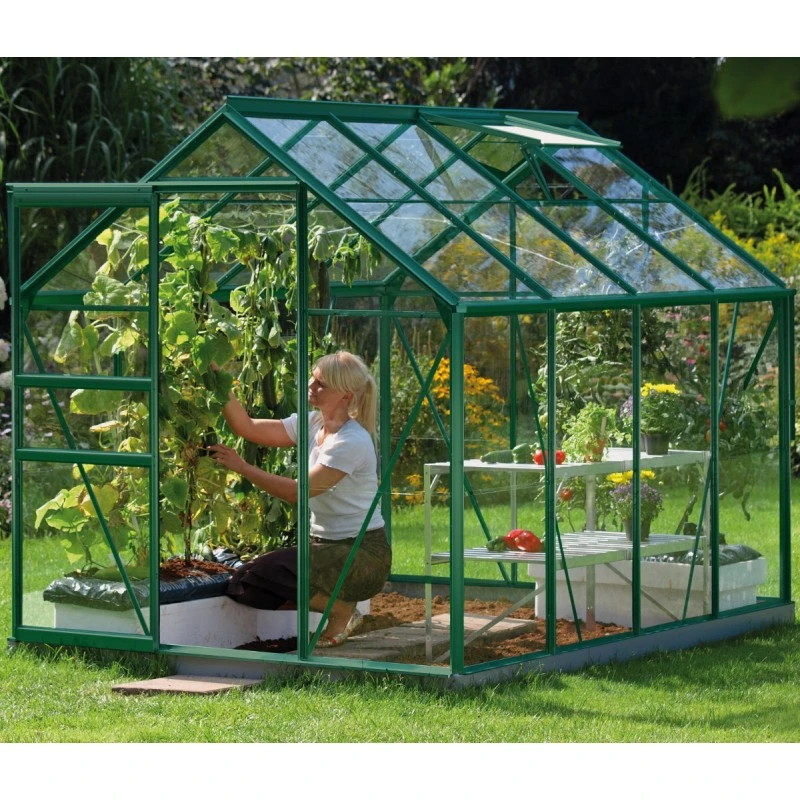 Cette serre horticole Allium Venus de Lams, d’une surface abritée de 4,9m², est livrée avec une finition laquée vert. Les profils sont en aluminium robuste, et d’un maniement léger.