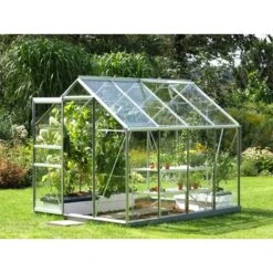 Ses panneaux latéraux et de toit sont en verre trempé d’une épaisseur de 3mm. Le verre trempé est totalement transparent (côté esthétique indéniable) et beaucoup plus résistant que le verre horticole (simple verre blanc). Il a aussi un caractère sécuritaire puisque si il est amené à se briser après un choc violent par exemple, il se fragmentera en de nombreux petits morceaux non tranchants.
