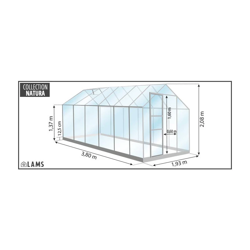 Cette serre de jardin d’une surface abritée de 7,3m² fait partie de la gamme Allium Venus de Lams. Sa structure en aluminium ainsi que l’embase en acier galvanisé de 12,5cm fournie sont laquées en vert, pour une intégration harmonieuse dans votre environnement extérieur. Cette serre jouit d’un excellent rapport qualité prix, et les matériaux utilisés lui assurent une belle durabilité dans le temps, comme en atteste la garantie de 10 ans couvrant la structure et 5 ans pour les joints d’étanchéité.