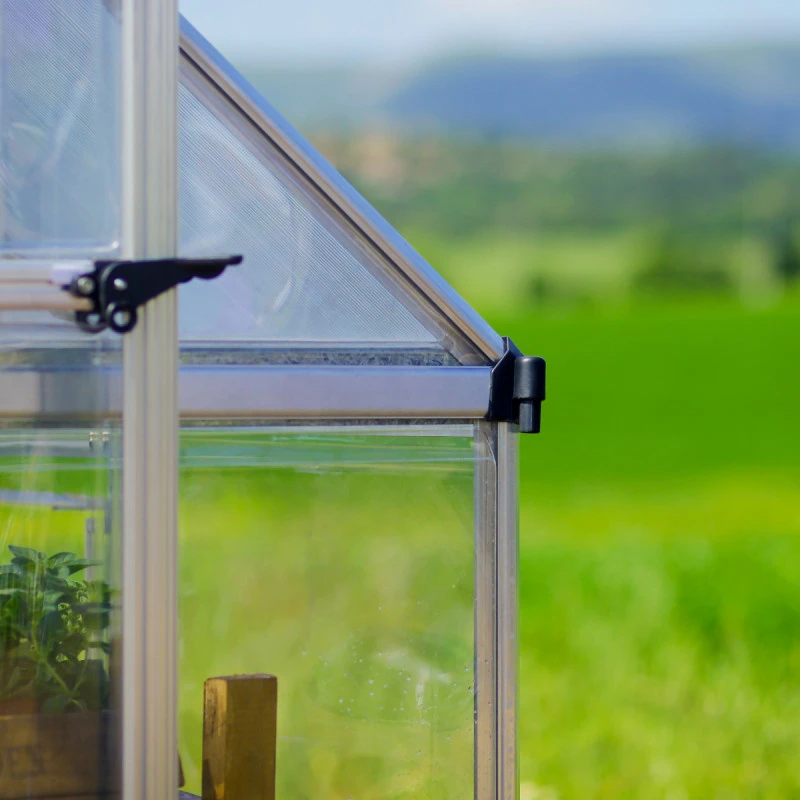 Les panneaux des parois sont fabriqués en polycarbonate protégé contre les UV avec Fine Shield Technology™, un polymère haut de gamme semblable au verre et pratiquement incassable, qui convient parfaitement aux serres de jardin. Le polycarbonate ne se décolore pas, ne se déforme pas et ne craint pas les chocs. La structure et l’embase de la serre sont en aluminium argenté résistant à la corrosion. Les serres Balance Canopia de Palram sont construites pour une utilisation durable, avec une garantie de 5 ans, et ne requièrent aucun entretien spécifique. Elles sont faciles à monter, grâce à un système d’assemblage de panneaux coulissants, prêts à assembler et pré-percés.