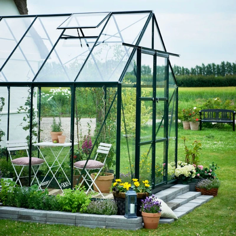 Le verre horticole est très appréciable puisqu’il permet une transparence complète des panneaux. Vous pouvez ainsi admirer vos végétaux, même quand vous vous situez à l’extérieur de la serre. Le verre est aussi un matériau facile d’entretien et résistant aux produits de traitement. Il se fixe à l’aide de clips et de cavaliers sur une solide armature en aluminium laqué noir.