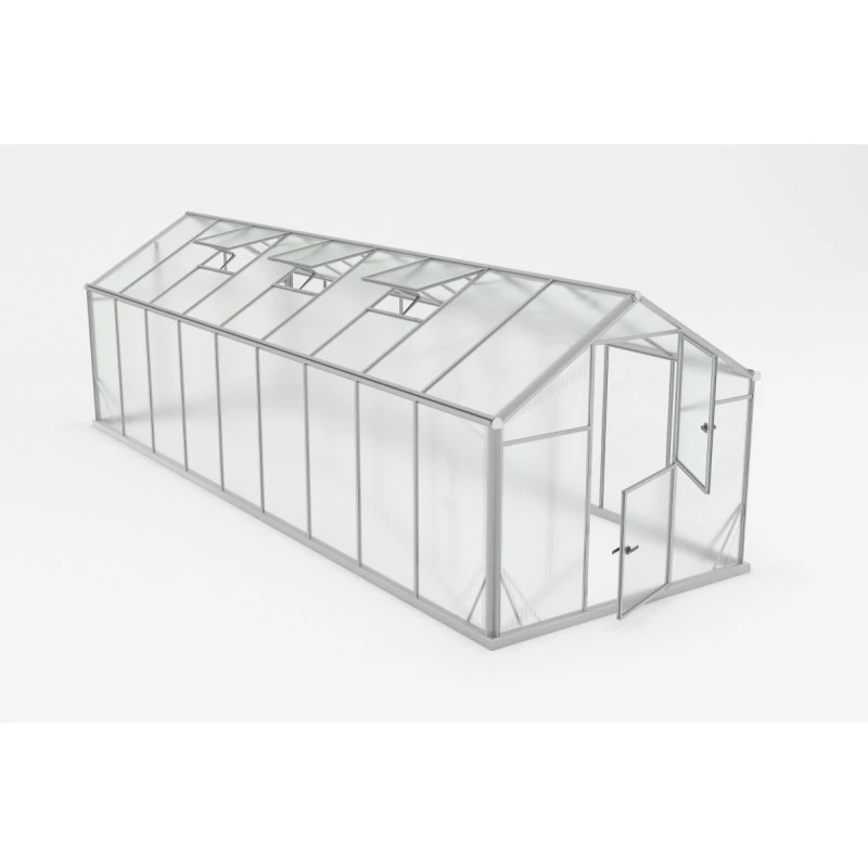 Les parois sont constituées de panneaux de polycarbonate alvéolaire de 6mm d’épaisseur. Le polycarbonate fabriqué en Autriche est pratiquement incassable, ne se griffe pas et résiste aux rayonnement UV, sans présenter de risques de coupures en cas de bris. Livrée avec son embase, qui facilite le montage et renforce la robustesse de la construction, cette serre possède un système de gouttières utiles pour recueillir l’eau de pluie ou pour la canaliser. Ce produit bénéficie d’une garantie de 5 ans.