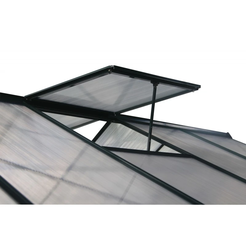 Vous pourrez également équiper les 4 lucarnes de compas pour une ouverture automatique, sans intervention manuelle. Les lucarnes s’ouvriront et se fermeront de façon autonome en fonction de la température, ce qui évitera l’asphyxie à vos végétaux en cas d’absence prolongée de votre part.