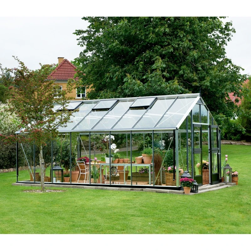 Cette armature est solide grâce à l’aluminium de très bonne qualité qui est utilisé, mais aussi par sa conception. Grâce aux photos de galerie, comparez les profils de la serre Gartner avec ceux d’une serre traditionnelle et vous comprendrez qu’elle ne peut être que plus résistante. L’ensemble des profilés supporte des panneaux en verre trempé qui subliment la serre. La transparence totale rend légère cette serre pourtant imposante pas sa taille, mais ravit également les utilisateurs puisqu’ils pourront contempler leur jardin quand ils seront en train de se reposer ou de travailler dans la serre. Depuis l’extérieur, c’est aussi très plaisant de pouvoir admirer les cultures.