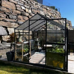 Le jardinage est une activité productive et agréable qui évoque la proximité de la nature et ne cesse d’éveiller votre curiosité. Avec la serre de jardin Variant, vous serez tentés d’expérimenter tout au long de l’année. Sa surface de 7,62m² est largement suffisante pour diversifier votre potager, pour créer des plates-bandes fleuries ou pour hiverner vos plantes. Les supports pour étagères fournis par défaut vous aideront à installer des étagères en verre ou en bois, disponibles en option, qui seront un équipement idéal pour ranger vos fleurs en hauteur sans encombrer l’espace au sol.