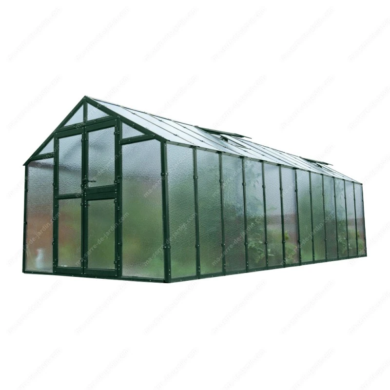 Conçue en verre cathédrale, épais de 4mm, votre serre de jardin Limes a un look esthétique et un peu mystérieux car la face gravée des panneaux isolera vos plantes des regards indiscrets et curieux. Naturellement opaque, le verre cathédrale est une solution très pratique qui rendra inutile la pose de rideaux ou de voiles d’ombrage en été. Pourtant, les rayons du soleil pénétreront librement dans votre serre de jardin car le verre cathédrale est reconnu pour ca capacité à disperser la lumière uniformément dans l’espace sans brûler les cultures. Les parois obliques participent également à cette luminosité idéale.