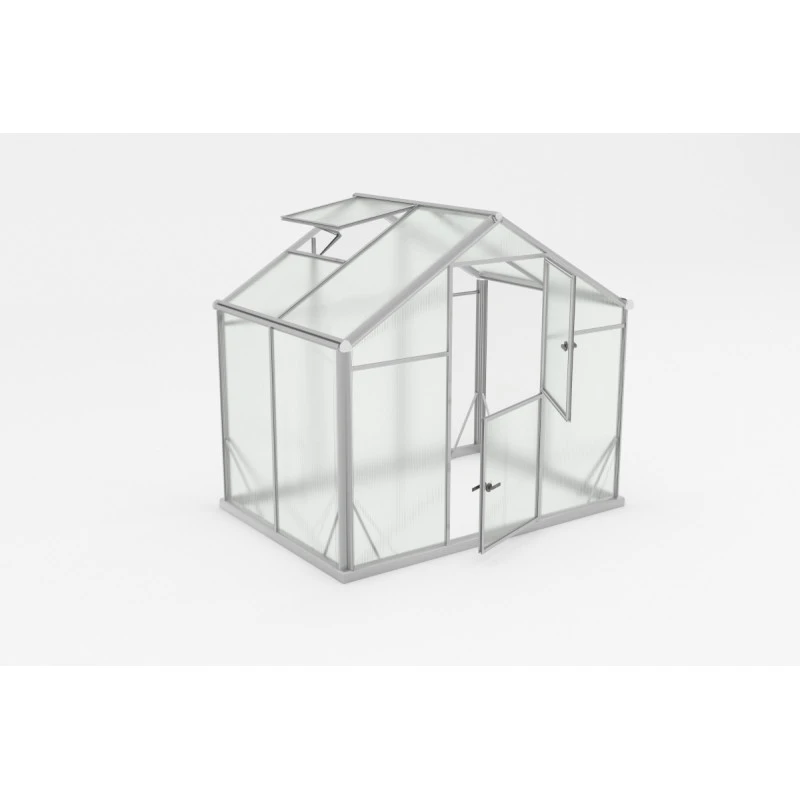 Les parois sont constituées de panneaux de polycarbonate alvéolaire de 6mm d’épaisseur. Le polycarbonate fabriqué en Autriche est pratiquement incassable, ne se griffe pas et résiste aux rayonnement UV, sans présenter de risques de coupures en cas de bris. Livrée avec son embase, qui facilite le montage et renforce la robustesse de la construction, cette serre possède un système de gouttières utiles pour recueillir l’eau de pluie ou pour la canaliser. Ce produit bénéficie d’une garantie de 5 ans.