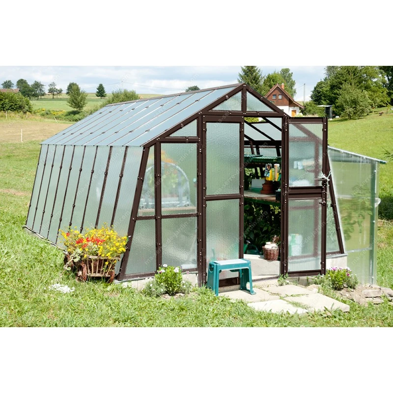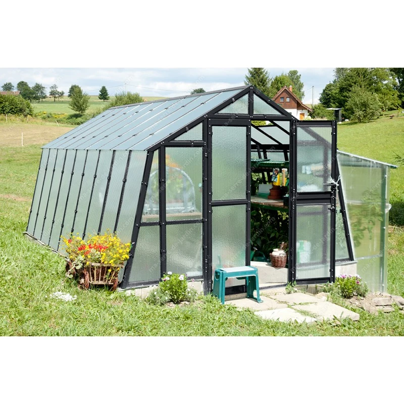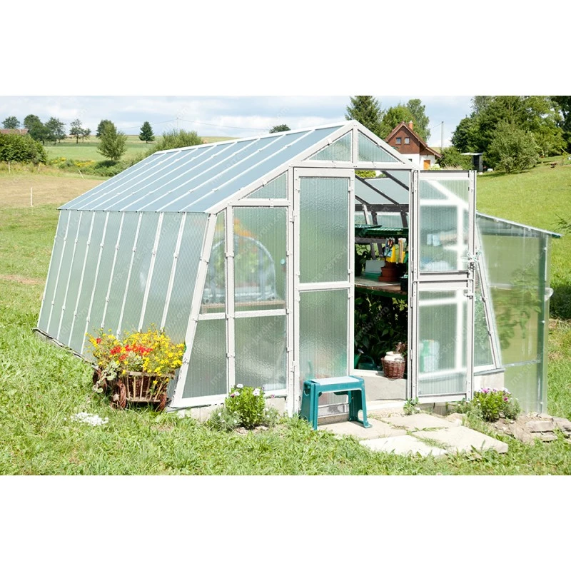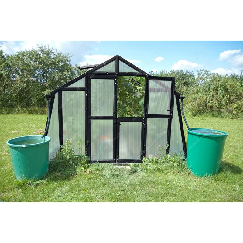 Cette serre de jardin à parois obliques assurera à vos plantes des conditions favorables à leur croissance rapide. Le polycarbonate, très épais de 8mm protégera votre serre contre les chocs éventuels et laissera la lumière naturelle pénétrer librement à l’intérieur. Parmi ses atouts figurent aussi sa propriété isolante et son poids léger qui facilitera le montage de votre serre de jardin.