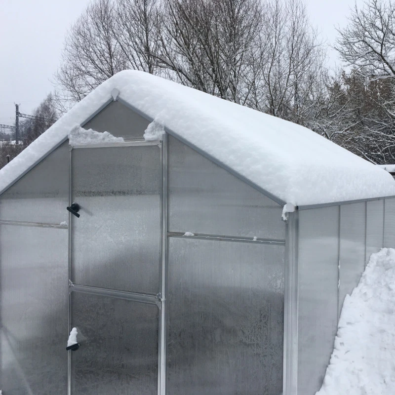 Les parois sont constituées de panneaux de polycarbonate alvéolaire de 6mm d’épaisseur. Le polycarbonate fabriqué en Autriche est pratiquement incassable, ne se griffe pas et résiste aux rayonnement UV, sans présenter de risques de coupures en cas de bris. Livrée avec son embase, qui facilite le montage et renforce la robustesse de la construction, cette serre possède un système de gouttières utiles pour recueillir l’eau de pluie ou pour la canaliser. Ce produit bénéficie d’une garantie de 5 ans.
