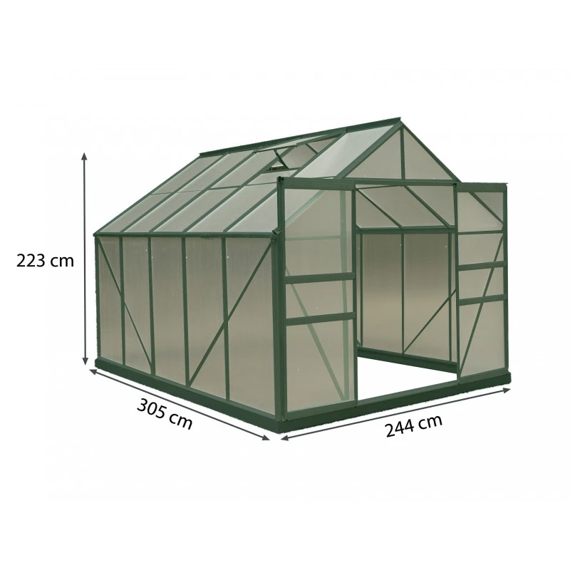 Cette serre de jardin est spécialement conseillée dans les régions froides. Quand Elle est conçue avec des panneaux de polycarbonate de 4mm d’épaisseur. C’est un matériau qui isole très bien et cette épaisseur renforce son caractère isolant et évite un maximum les pertes de chaleur et les variations de températures trop brutales.