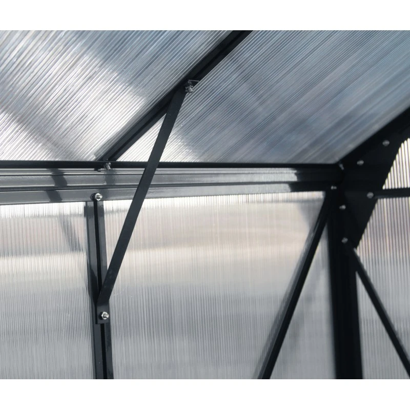 Rappel des avantages de la serre de jardin 9,13m² anthracite en polycarbonate 4mm + embase Green Protect