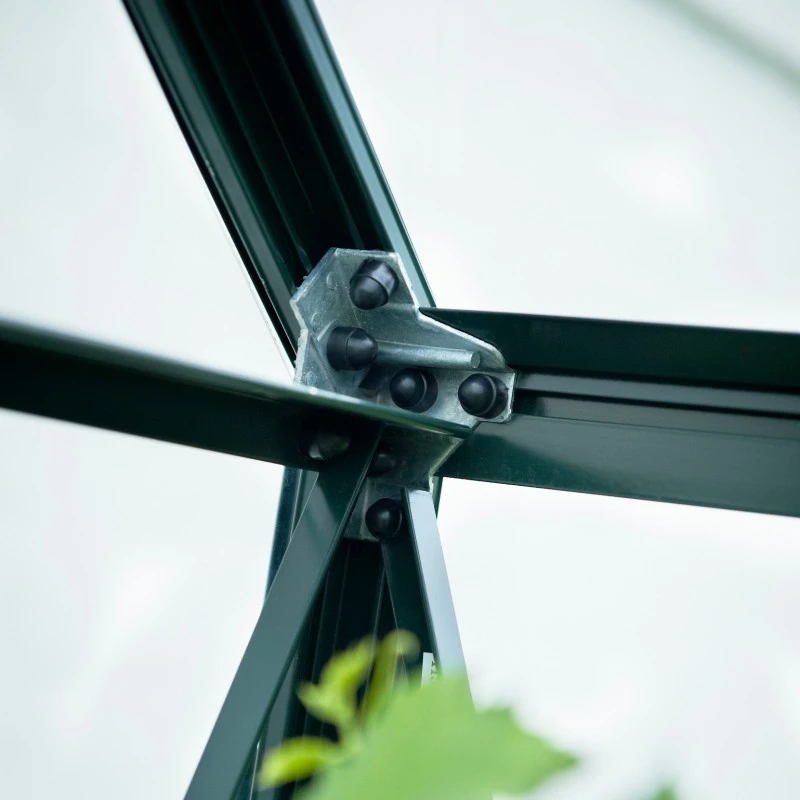 Ce modèle est conçu avec des profilés en aluminium robustes sur lesquels viennent se clipser des panneaux de polycarbonate de 6mm, matériau idéal pour retenir la chaleur à l’intérieur de la serre. L’épaisseur de ce polycarbonate est supérieure de 50% par rapport au standard du marché.