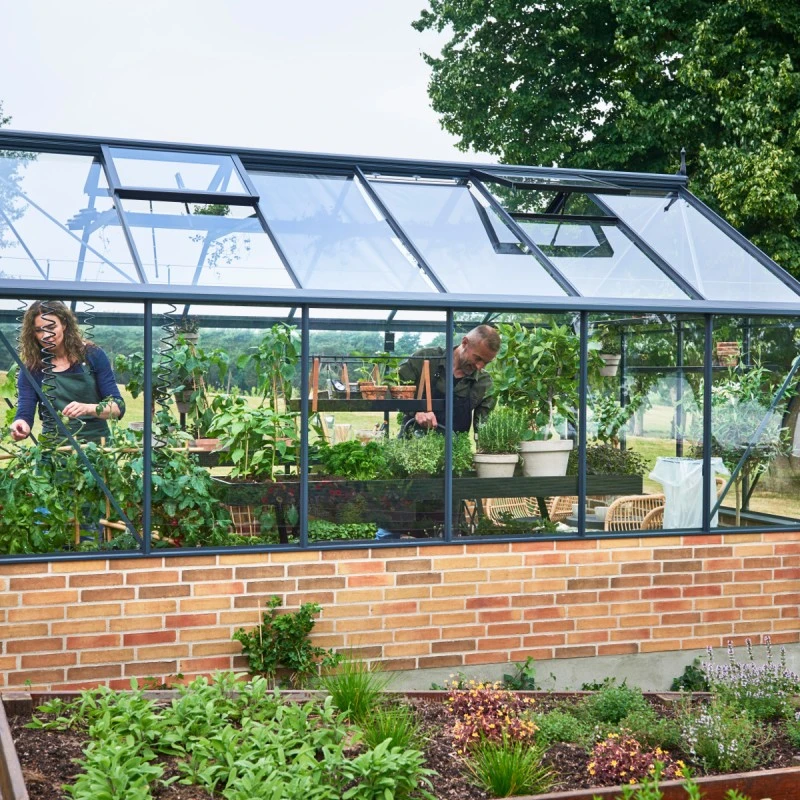 Vidéo de présentation de la serre de jardin anthracite en aluminium et verre trempé Premium sur muret – Juliana