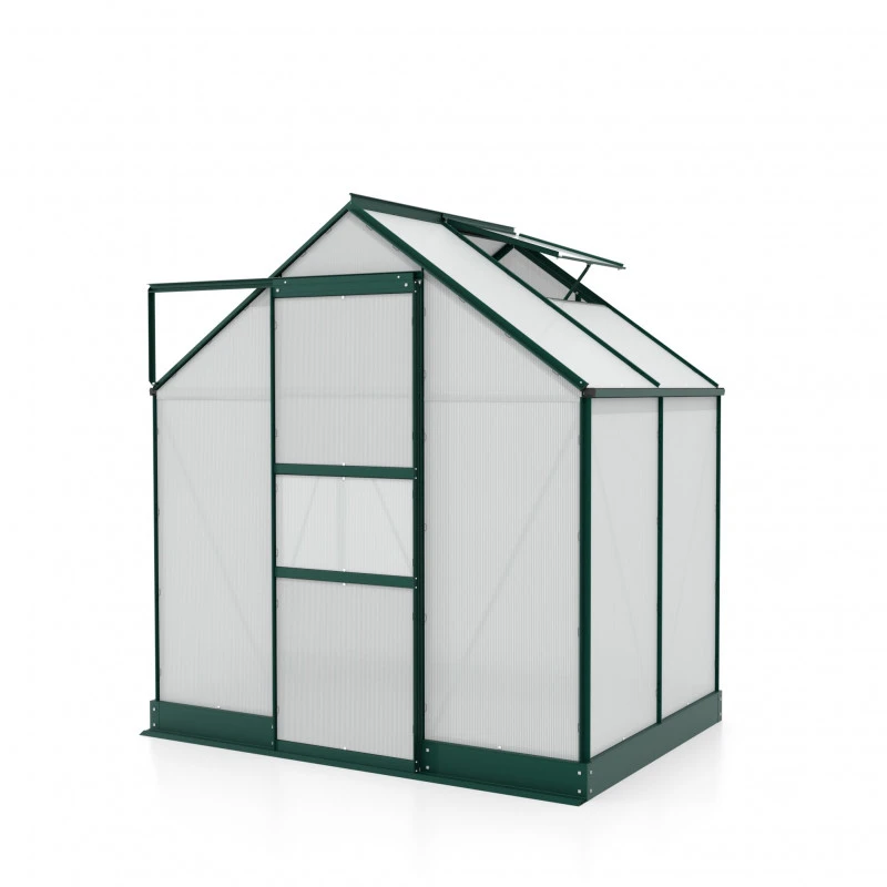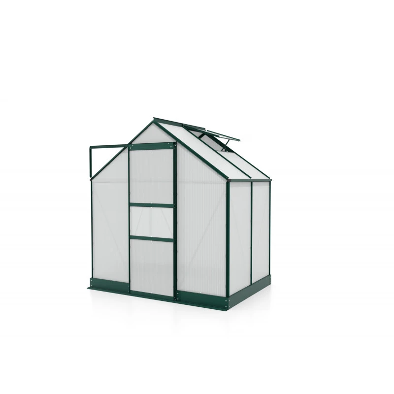 La structure légère et robuste en aluminium de la serre de jardin Apollo 2500 bénéficie d’une garantie de 15 ans. Elle est revêtue d’une peinture en poudre d’un vert émeraude original ce qui la protège davantage contre la corrosion et les intempéries.