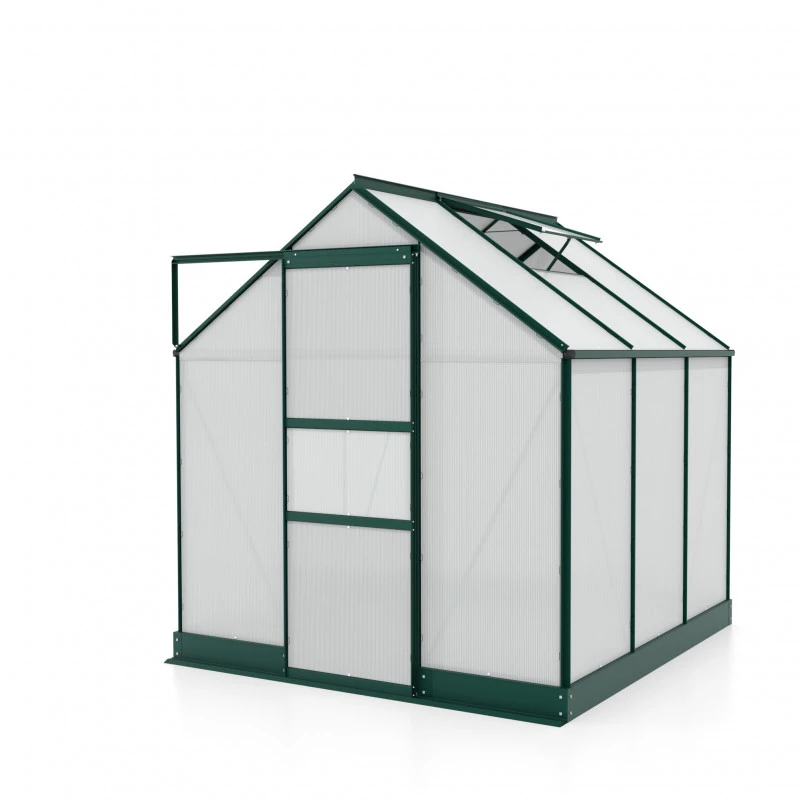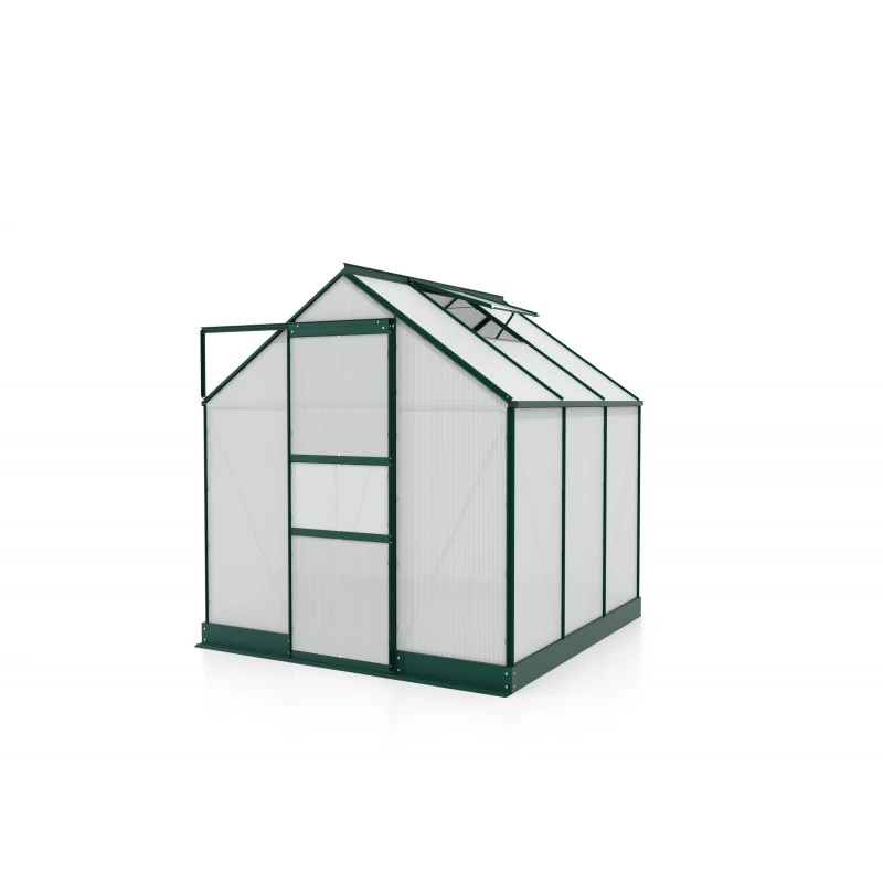 La structure de la serre de jardin Apollo 3800 est en aluminium peint par poudrage en vert émeraude et protégé à long terme contre la corrosion et les intempéries. De plus, l’aluminium est un matériau léger qui rend le montage simple et sans effort.