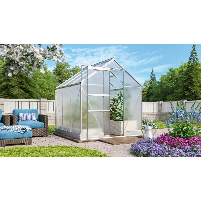 La serre de jardin 3,8m² Apollo offre suffisamment d’espace pour cultiver des plantes et abriter vos outils de jardinage. La structure est composée de profilés en aluminium étroits ce qui laisse entrer beaucoup de lumière à l’intérieur de la serre. L’aluminium anodisé résiste bien aux intempéries et à la corrosion et garantit un bel aspect à long terme.