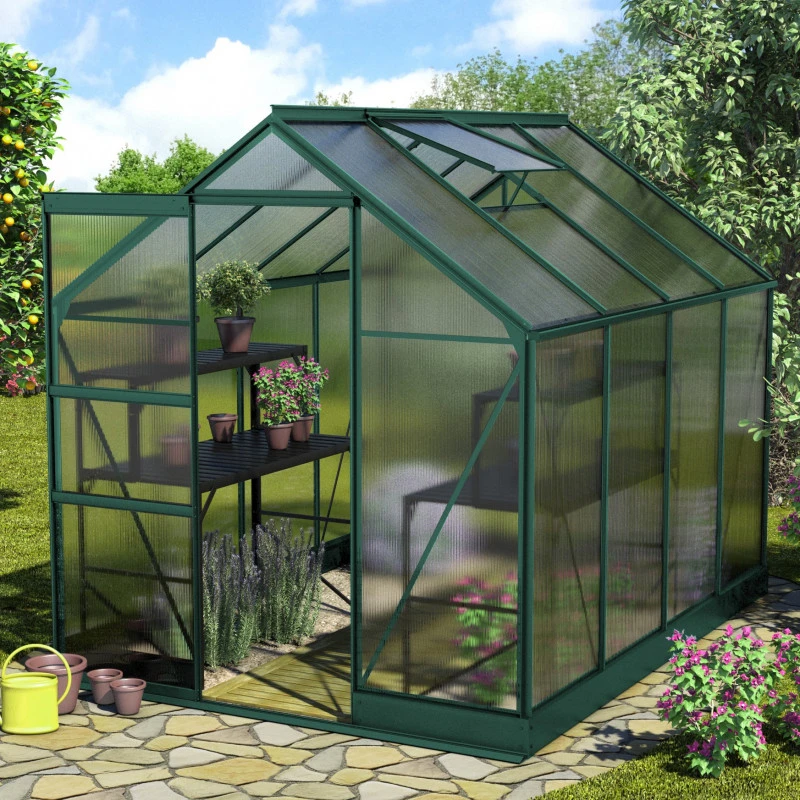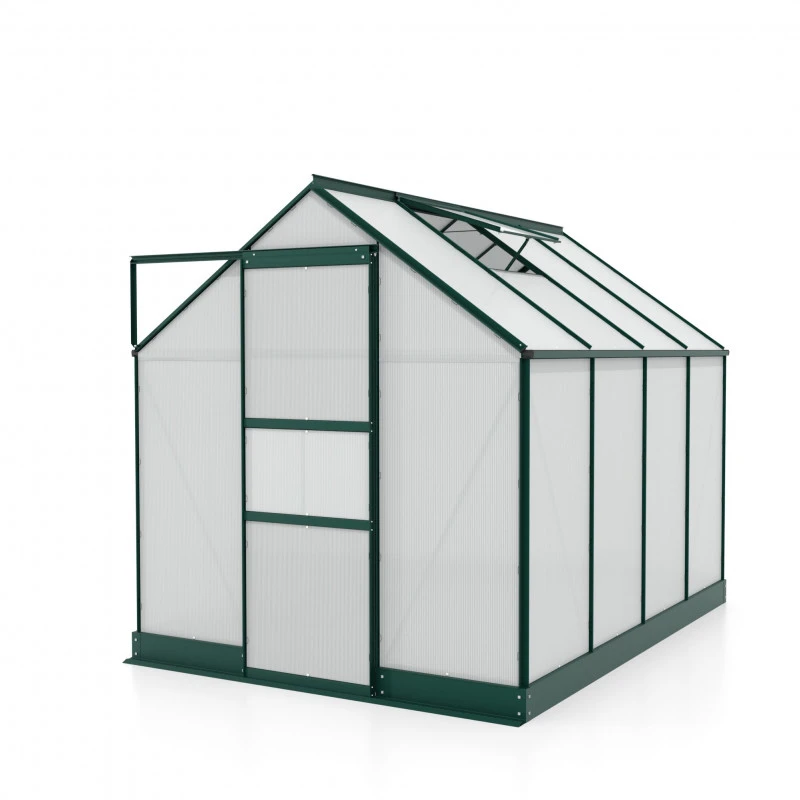 La structure de la serre de jardin Apollo 5000 est fabriquée en aluminium. Garantie 15 ans par le fabricant, elle est revêtue d’une peinture en poudre de couleur vert émeraude résistante à la corrosion et aux intempéries, ce qui garantit un bel aspect à long terme.