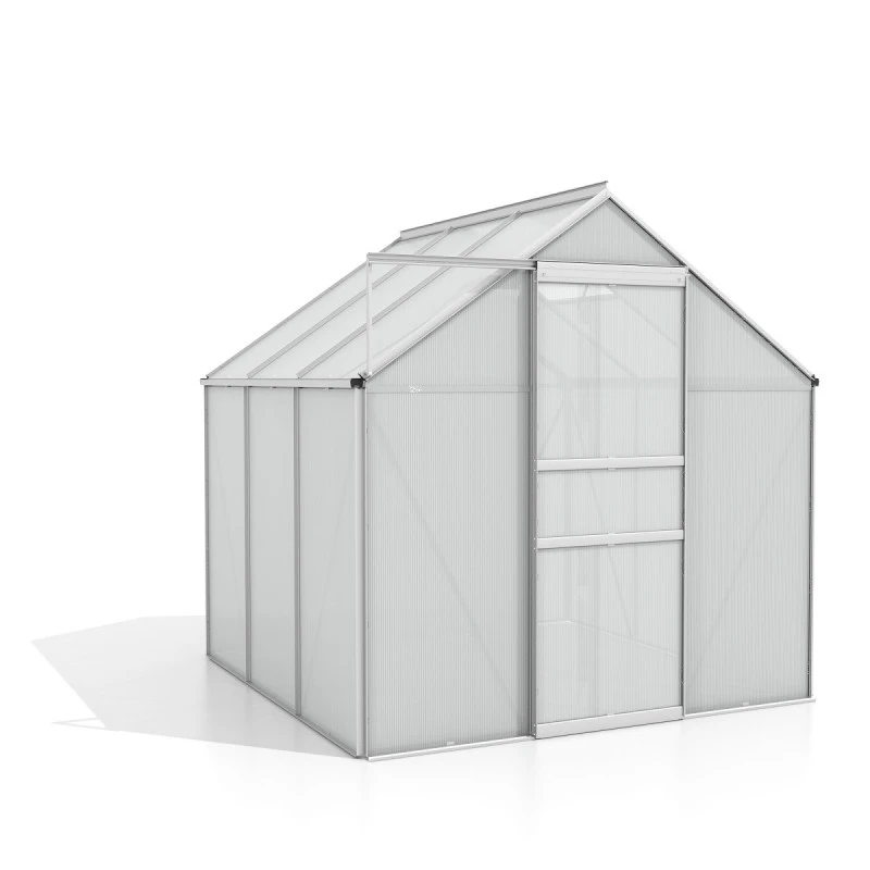 La serre de jardin en alu et polycarbonate Comet est livrée avec une porte coulissante, une fenêtre de toit et des gouttières. La porte large de 61cm et haute de 161cm est cadenassable (cadenas non fourni) pour mettre votre contenu en toute sécurité. Une fois la porte et la fenêtre de toit ouverte, votre serre sera aérée tout naturellement. Les gouttières, de leur côté, assurent une étanche idéale en évacuant rapidement les eaux pluviales.