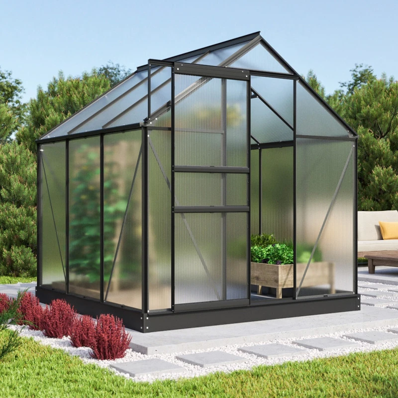 Bien pensée pour vous servir pendant des années, la serre de jardin en alu et polycarbonate Comet du fabricant Vitavia existe en 3 couleurs différentes – aluminium anodisé, vert émeraude et noire et s’adapte sans effort à tout type de jardin.