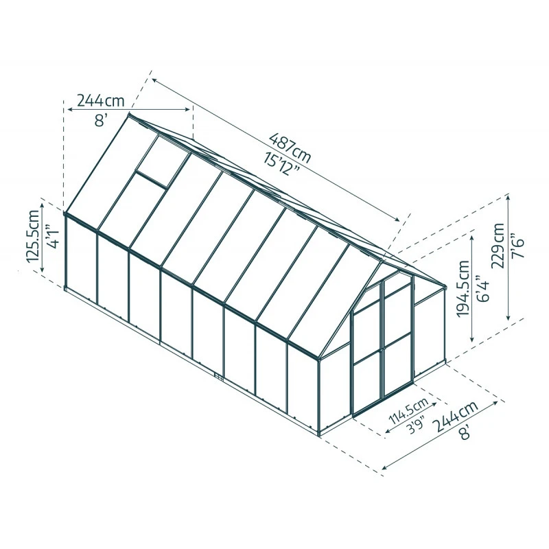La serre Canopia by Palram Essence™ Silver est dotée de deux lucarnes d’aération pour une ventilation améliorée, d’un seuil bas, d’un beau volume intérieur et d’une double porte verrouillable qui permet un accès facile.