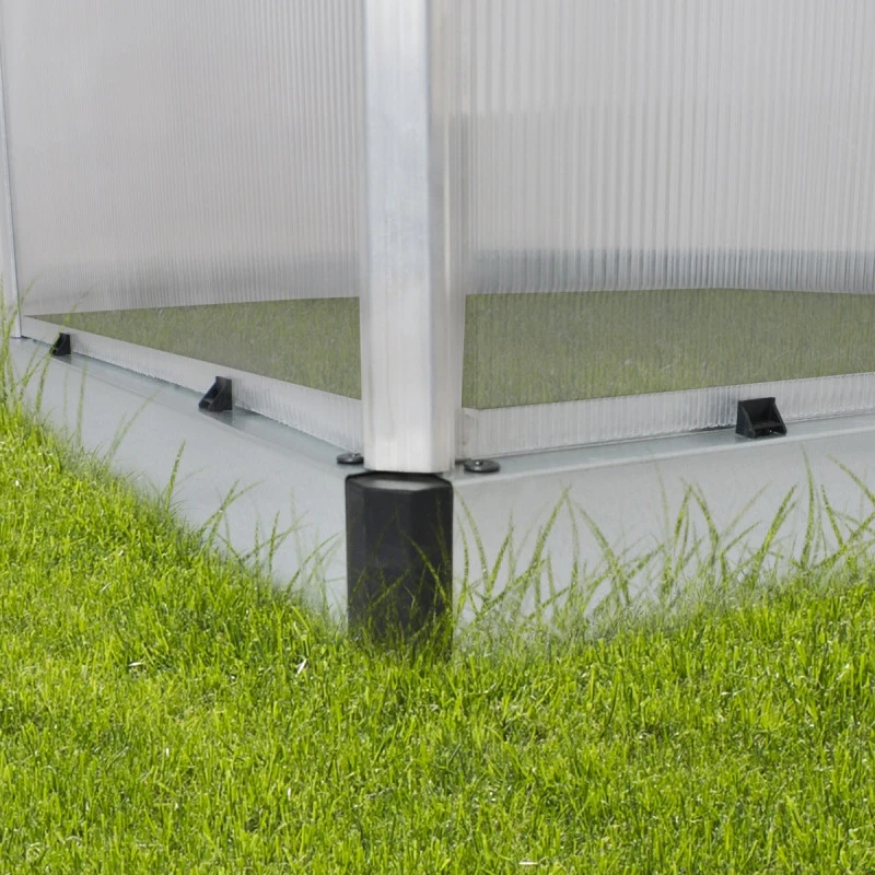 • Cadre en aluminium résistant à la rouille et extra-rigide, renforcé par une embase fournie en acier galvanisé, des raccords faîtiers et deux poutrelles de soutien