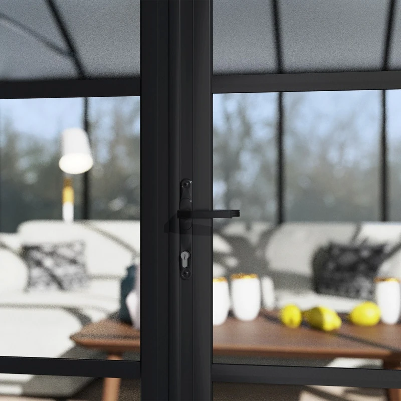 Les parois de la serre de jardin 16m² Triomphe sont réalisées en verre acrylique épais de 2mm. Ils sont parfaits pour vous isoler du bruit externe et de travailler en toute quiétude. Transparents, ils assurent une excellente clarté à l’intérieur avec sa transmission lumineuse de plus de 90%.