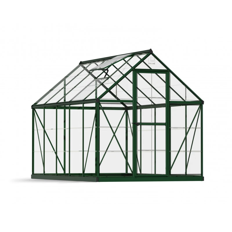 Cette serre de 5,7m², dont l’embase en acier galvanisé et la structure en aluminium sont recouverts d’une peinture verte anticorrosion, fait partie de la gamme Harmony™ de Canopia by Palram. D’une largeur de 185cm pour une profondeur de 305cm, cette serre bénéficie de la grande expérience de Canopia by Palram.