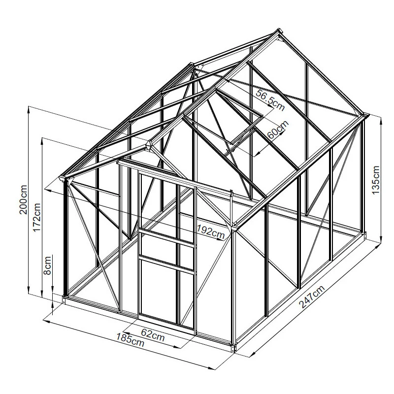 Les grands panneaux de verre trempé rend l’aspect de la serre plus léger, comparé aux multiples panneaux de verre horticole superposés à l’aide de cavaliers ou au polycarbonate. Protégés sous la serre, vous pourrez toujours admirer vos végétaux même en étant à l’extérieur de la serre, grâce à la transparence totale du verre
