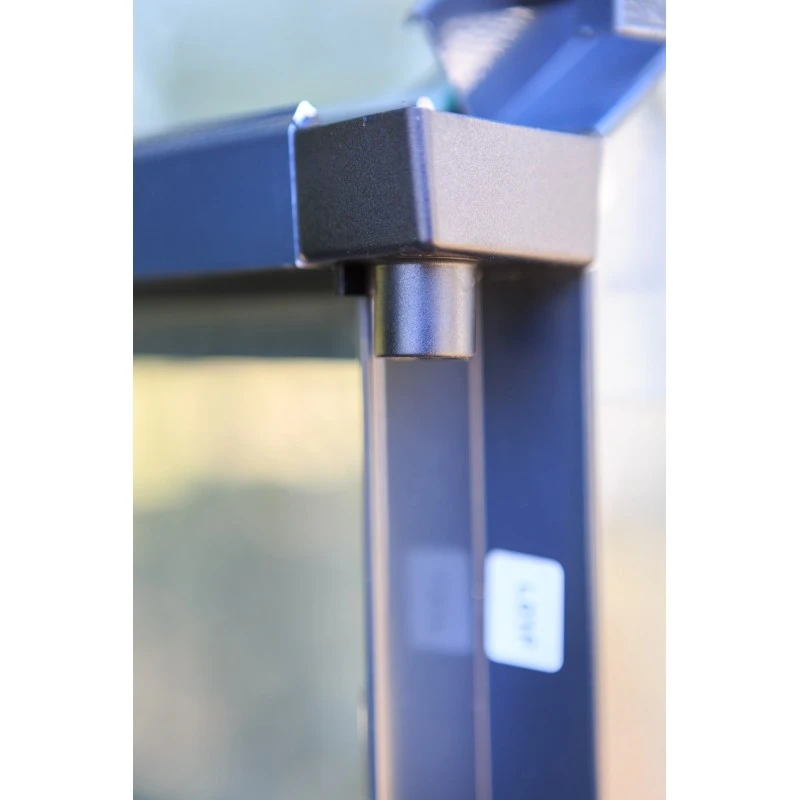 Son armature, solide, en aluminium, est recouverte d’une peinture grise anthracite qui lui apporte un charme contemporain. Ses panneaux sont en verre trempé, pour une transparence parfaite et donc une pénétration de la lumière sans égal, tout en bloquant les rayons UV qui sont nocifs pour les végétaux. Le verre trempé est aussi plus robuste que le verre ordinaire et quand il se casse, il forme de petits morceaux non tranchants, à l’image du verre des pare-brises de voiture. C’est donc à privilégier si vous êtes entourés d’enfants en bas âge ou d’animaux domestiques.