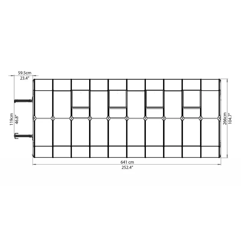 Voici le plus grand modèle des serres très spacieuses de la gamme Hobby Gardener® de Canopia by Palram, qui développe une technologie Palram. Avec sa longueur de 641cm et sa hauteur faîtière de 208cm, le volume intérieur est très confortable, et la forme de grange de la structure vient encore optimiser la hauteur utile, pour cultiver des plantes hautes, arbustes ou pour une gestion des cultures sur plusieurs niveaux, avec par exemple les étagères en option ou le système de palissage en kit de Canopia by Palram.