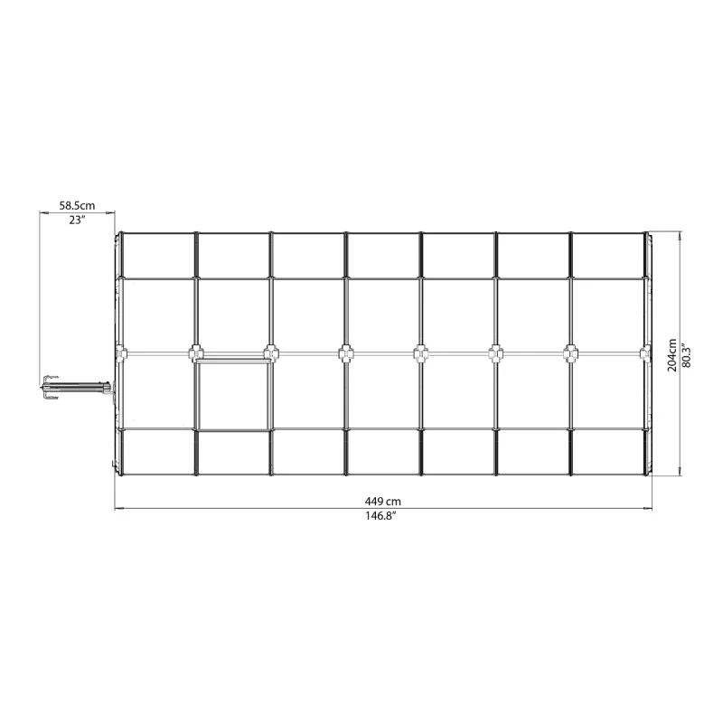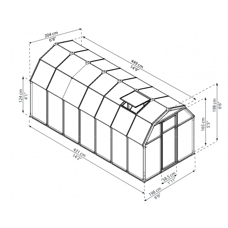 Large de 204cm pour une longueur de 449cm, la serre Eco Grow® de Canopia by Palram de 9,15m² est la plus grande de sa gamme. La technologie développée par Palram mise surtout sur la préservation de la chaleur, avec les panneaux de toiture de 4mm et ceux des parois de 6mm en polycarbonate alvéolaire à doubles parois.