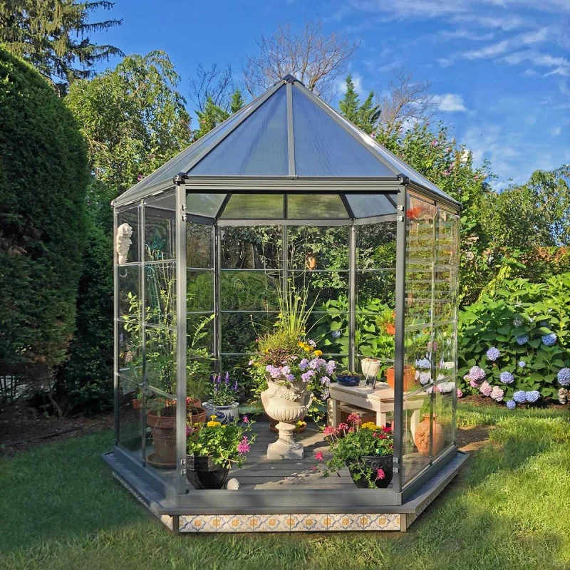 L’avis du spécialiste sur la serre de jardin hexagonale en alu et polycarbonate 5,26m² Oasis™ Grey – Canopia :