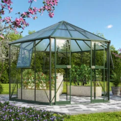 L’avis du spécialistesur la serre de jardin hexagonale Galaxis 9m² en aluminium émeraude et vitrage combiné – Vitavia :