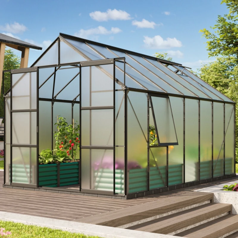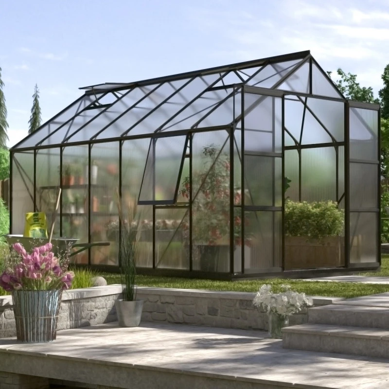 L’avis du spécialiste sur la serre de jardin Jupiter 11,5m² en alu noir et polycarbonate 4mm – Vitavia :